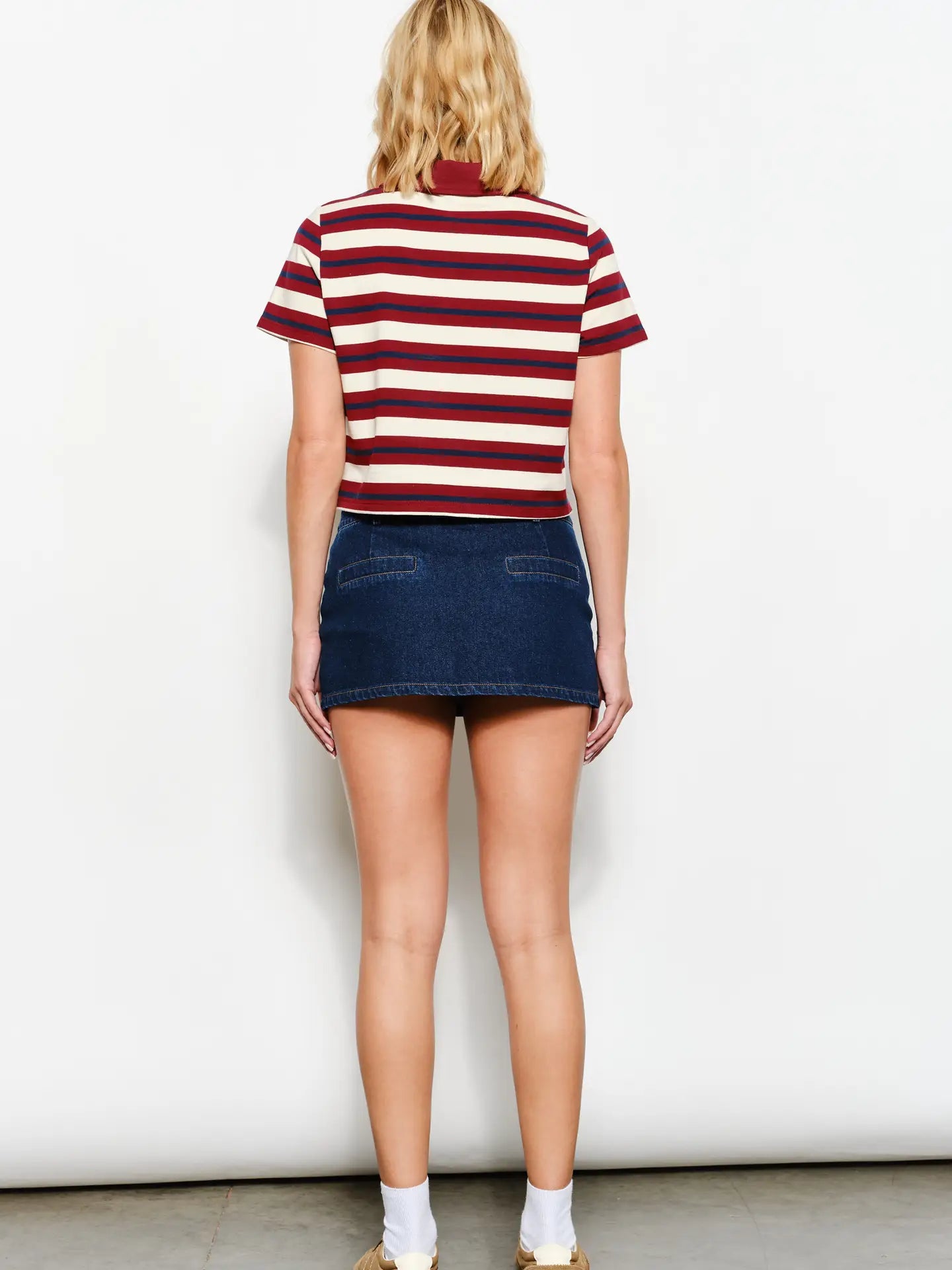MINI SKORT brings classic denim style with a playful twist. Designed for comfort and versatility, this skort features a zipper and button closure, belt loops for added flair, and faux pockets for a sleek look—all with lined shorts for confidence in every move. - Denim fabric for a timeless, versatile look - Zipper + button closure for a secure fit - Belt loops for styling with your favorite accessories - Faux pockets for a clean, streamlined appearance - Lined shorts for comfort and coverage Model is 5'7" and wearing a size small Fabric: 90% Cotton, 10% Spandex Ideal for shops looking for must-have, statement skorts! A must-have for bold, fashion-forward collections.