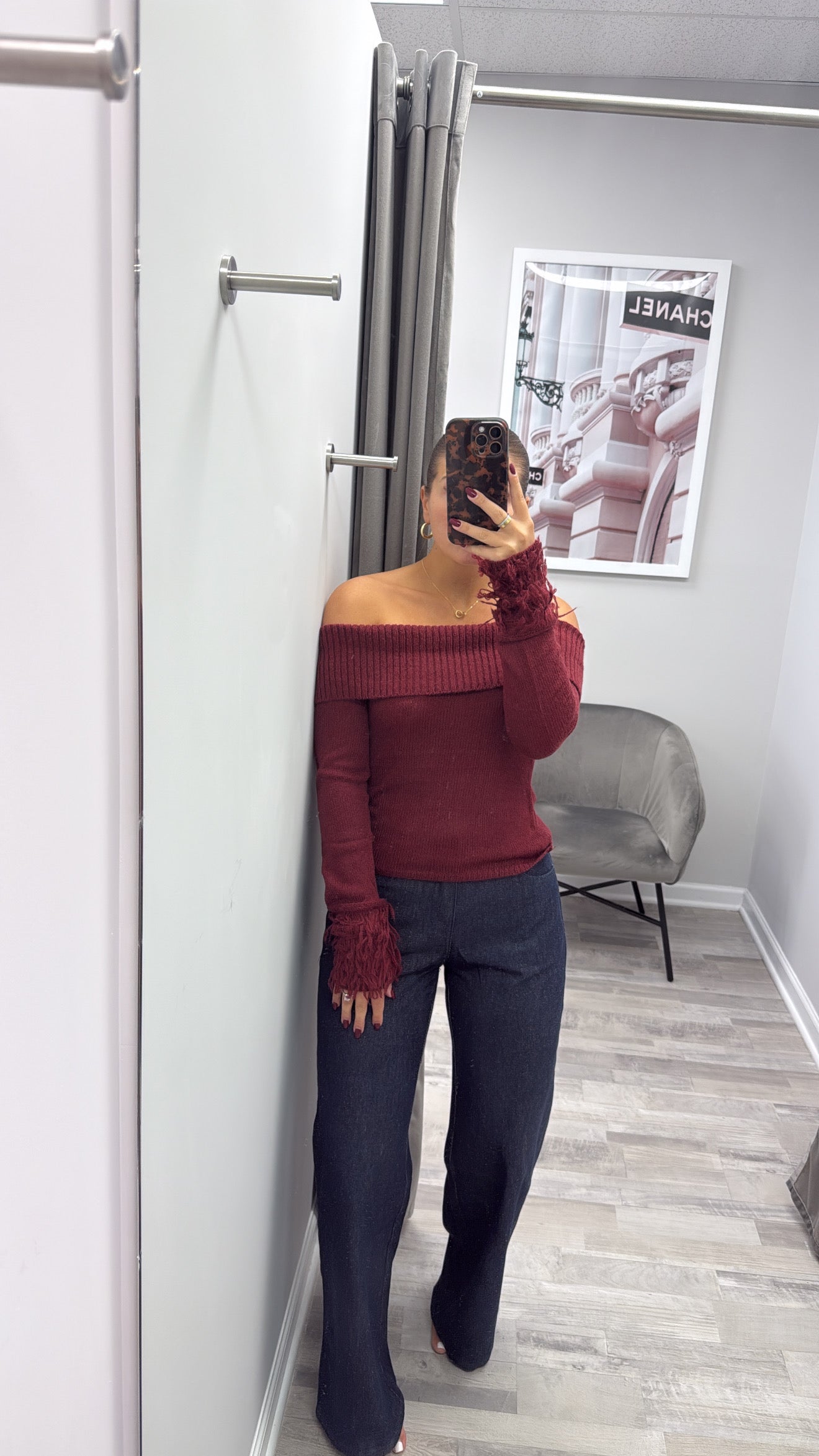 Add a touch of luxe to your wardrobe with the Furry Sleeve Detailed Off Shoulder Sweater Top. Featuring a cozy off-shoulder design and soft, furry sleeves, this sweater blends comfort with a statement-making twist. The relaxed fit and soft knit fabric ensure warmth, while the playful fur detailing on the sleeves brings an elevated, stylish flair. Perfect for date nights, casual outings, or cozy days, this sweater adds a chic, feminine touch to any outfit.