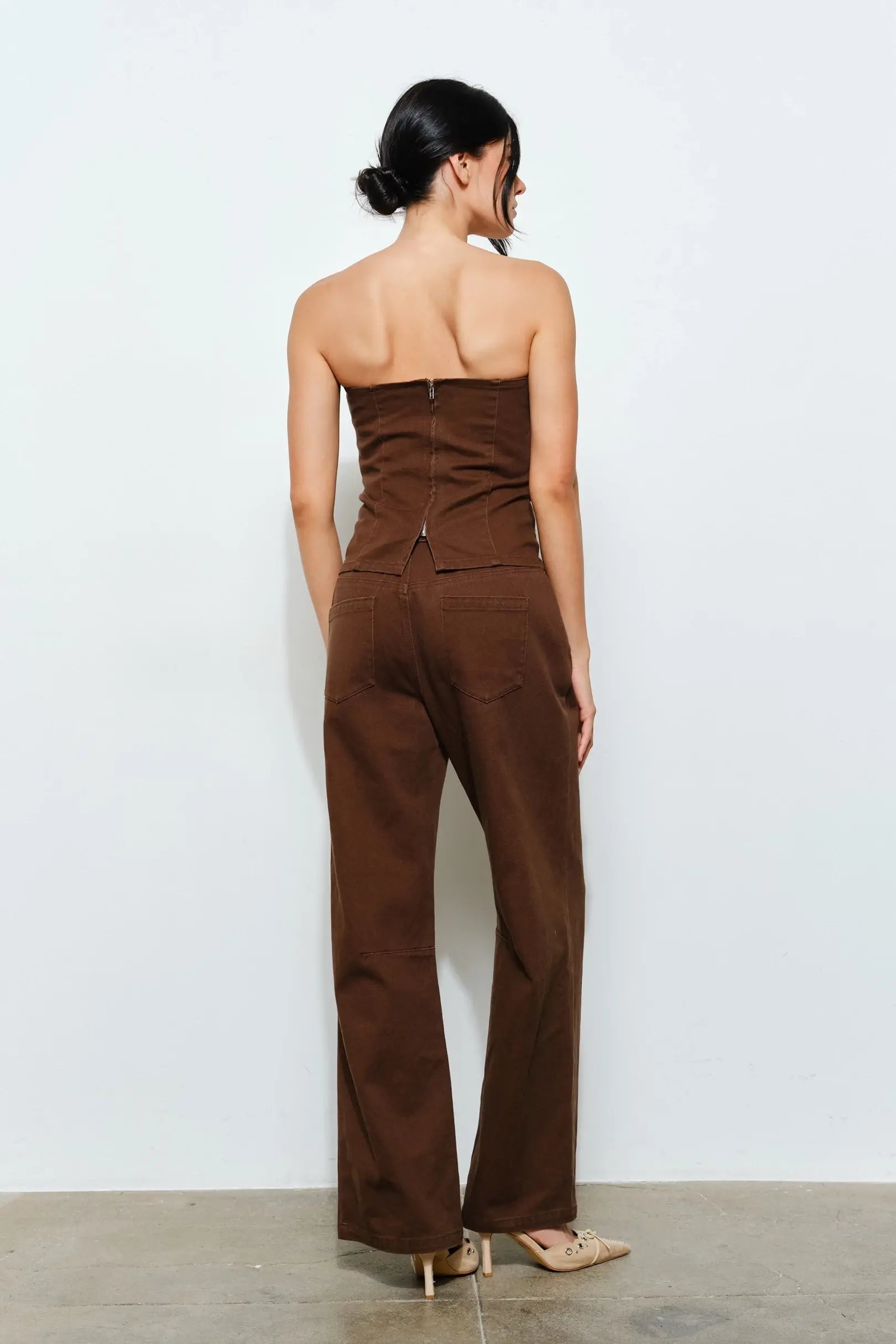 Upgrade your everyday style with the every woman pant! Made from sturdy twill fabric, these pants feature classic pockets, a button and fly zip closure, and a unique adjustable buckle detail at the back for a custom fit. Pair them with the matching top for a coordinated, on-trend look that's perfect for any occasion. - Durable twill fabric for a polished, structured feel - Classic pockets for convenience - Button + fly zip closure for easy wear- - Adjustable buckle detail at back for a personalized fit