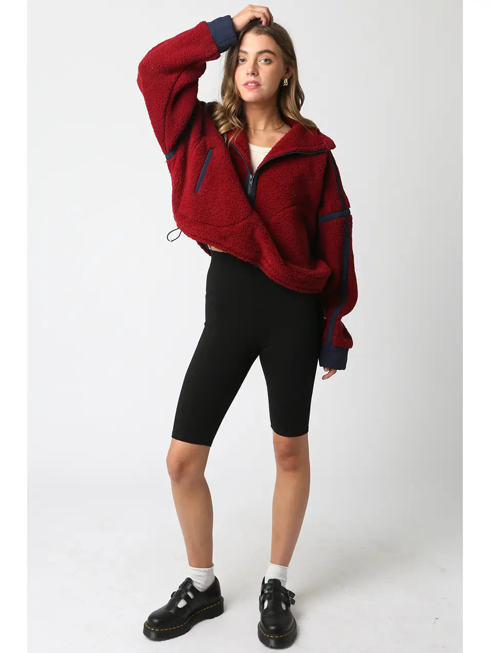 Our Fleece Quarter Zip features a high collared neckline with an adjustable strap at the hem for a customized fit and a practical side pocket detail.