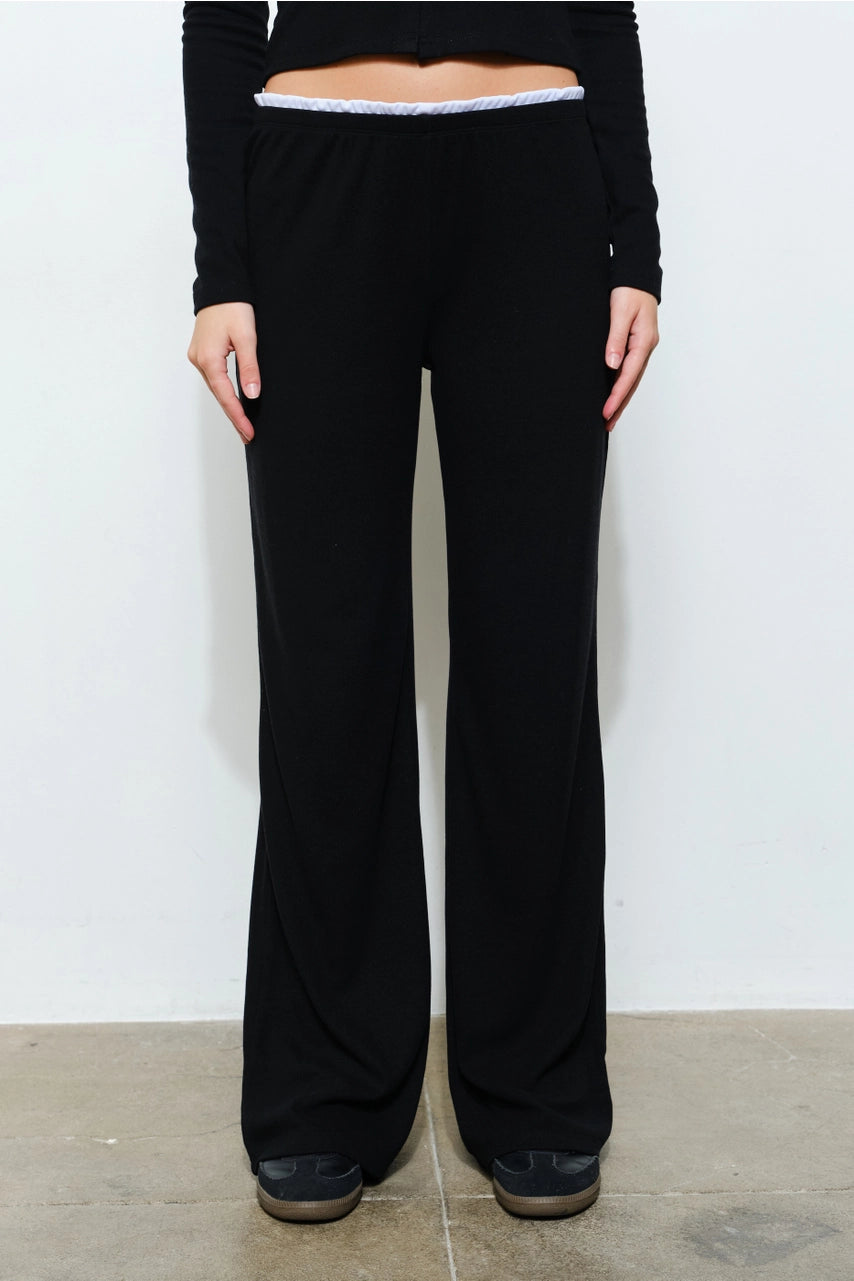 Comfy meets cute in the one that got away outfit! Made from a soft, stretchy ribbed knit, these pants feature an elasticized waistband with a playful contrast detail for that extra pop. The relaxed, flattering fit makes them perfect for all-day wear, whether you're lounging or heading out. Pair with the matching top for an effortlessly coordinated look that's equal parts cozy and stylish.